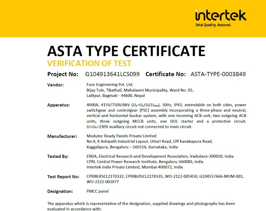 The only Nepal-based company with IEC 61439 ASTA Certification, delivering products built to global standards from our state-of-the-art facility.